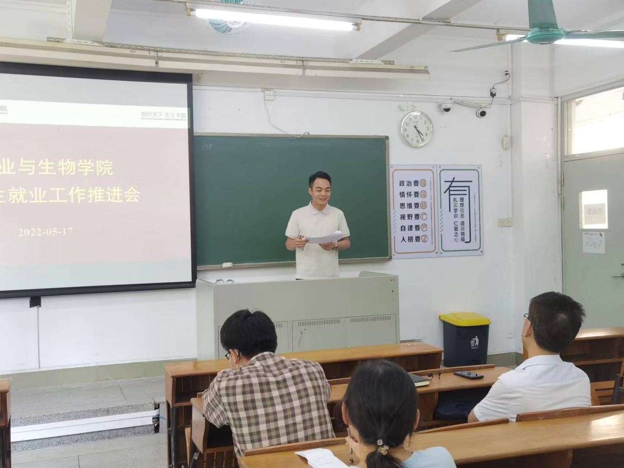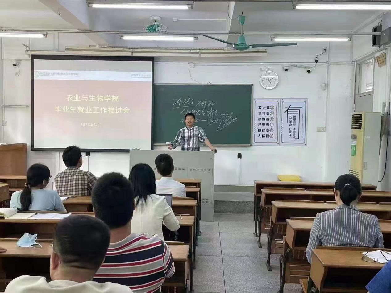 郑奕雄强调同学们应该当代国际形势严峻,粮食能源安全急需保障。而国内的乡村振兴战略,更需要农科和生物人才,积极引导同学们往基层走,往乡村振兴去,那里大有可为。他提出三点建议:第一,加强引导,鼓励毕业生到基层建功立业,以创新创业推动员工就业,切实践行乡村振兴之路;第二,积极疏导员工心理。积极宣传国家就业政策和平台,引导员工调整就业心理,掌握特殊人群的心理问题,排解就业压力,缓解就业消极情绪,同时,及时收集员工就业困难和需求,迅速解决。第三,加强就业督导工作。通过督查不断强化就业工作主体责任,通过精准指导深入落实就业工作准确识变,科学应变,主动求变,以更大力度、更高强度、更准精度促进就业服务体系更加连贯、就业服务更为深入、就业指导更具实效。