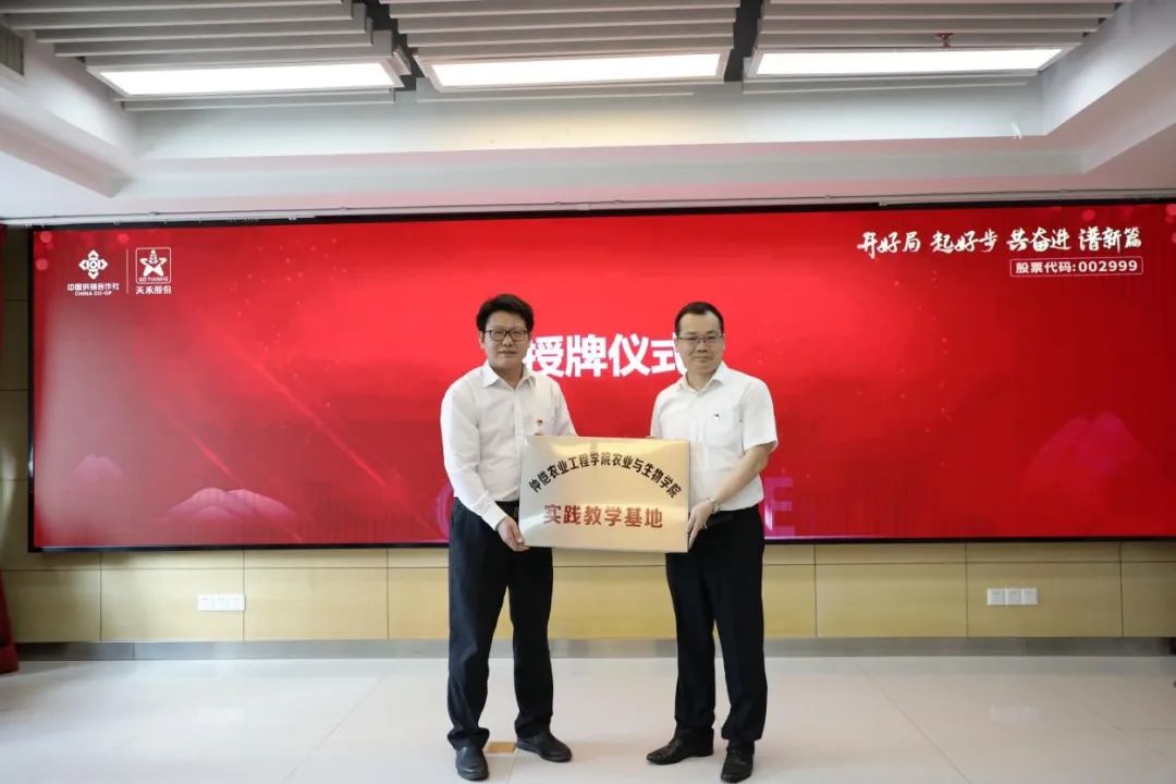 陈丹雄代表公司向天禾农资公司授予实践教学基地牌匾。