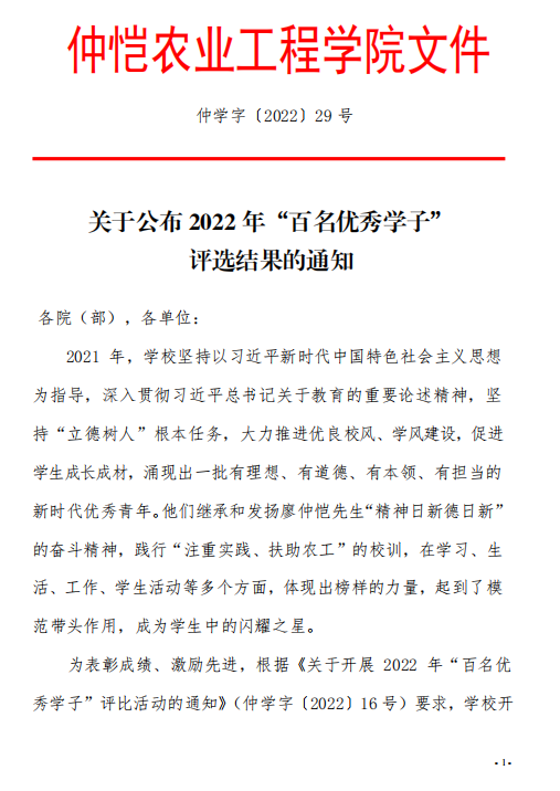 为表彰成绩、激励先进,根据《关于开展 2022 年“百名优秀学子”评比活动的通知》(仲学字〔2022〕16 号),公司开展了 2022 年“百名优秀学子”评比活动。