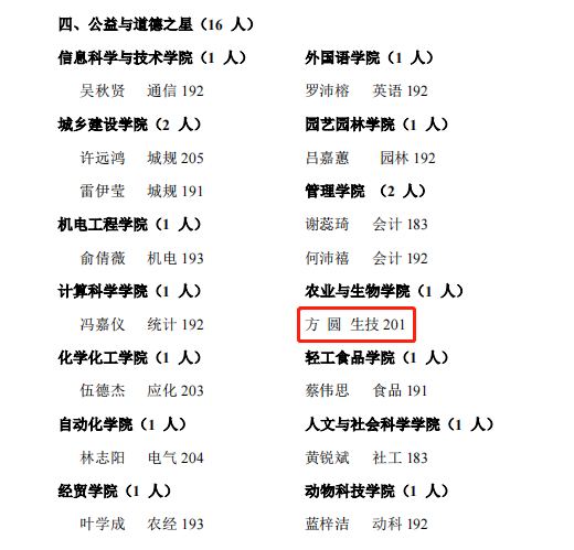 best365官网入口注册共有7名学子被评为“百名优秀学子”。其中,产业181区涣彩、植保192班雅欣被评为“学习之星”称号,生技201李宇锋被评为“自强之星”称号,生技192黄杰豪被评为“创新创业之星”称号, 生技201方圆被评为“公益与道德之星”称号,生科191肖祥志、产业191梁诗桦被评为“文体与实践之星”称号。
