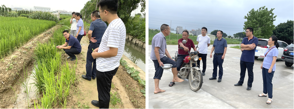 6月8日,在童队长的带领下,科技特派员先后拜访了阁二村书记许树龙,实地调研了东升村撂荒地复种水稻基地,后郭村淮山药种植基地。