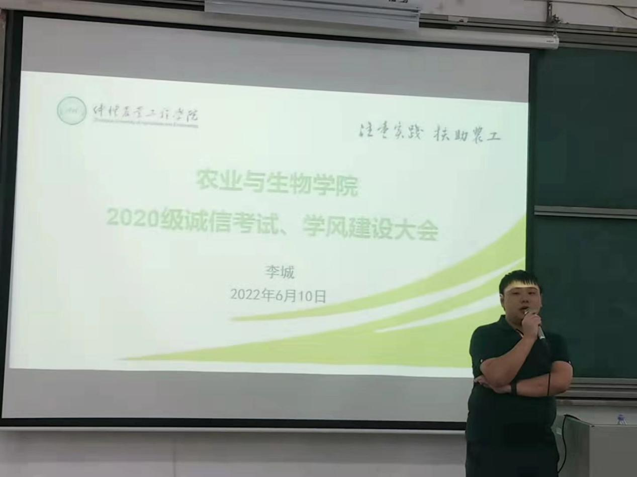 为了加强公司的学风建设,树立诚信考试的观念,同时增进农生学子对考研的了解、让同学们尽早做好考研备考的规划,6月10日下午,best365官网入口注册在白云校区D2小礼堂举行2020级诚信考试、学风建设大会暨考研分析讲座。参加本次会议的人员辅导员李城,聚创考研的明月老师以及20级全体同学。本次会议由李城主持。