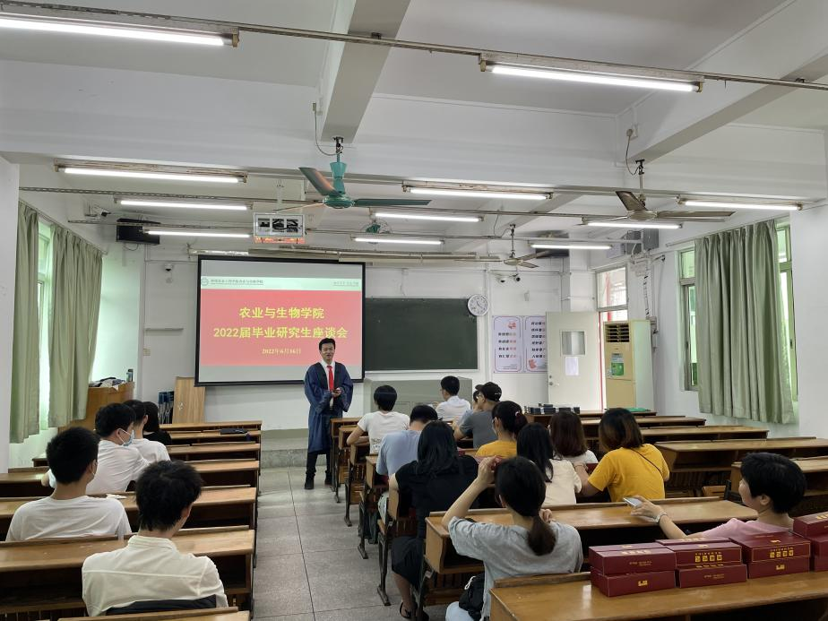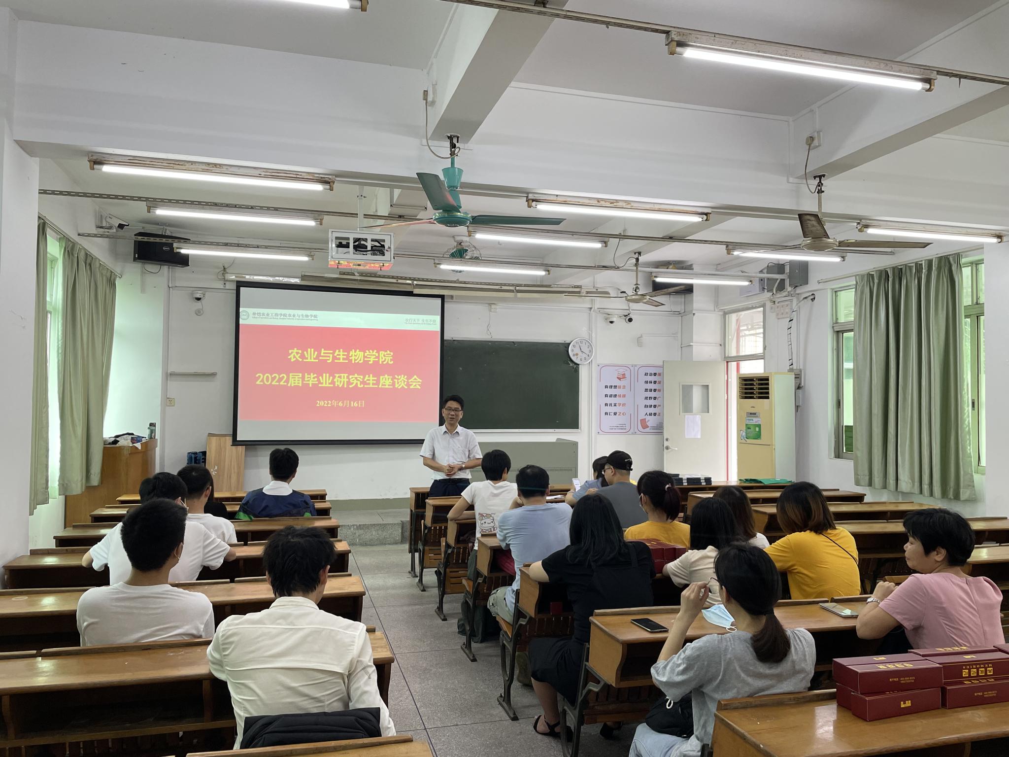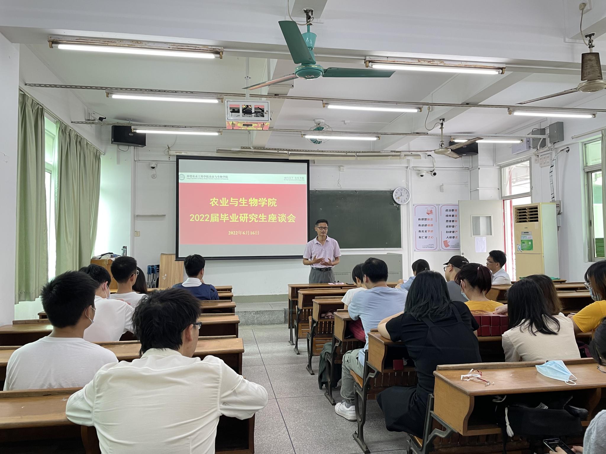 清荷花香,杨柳依依,又是一年毕业季。6月16日上午,best365官网入口注册于海珠校区教学楼505课室举行2022届毕业研究生座谈会,best365官网入口注册经理郑奕雄、党委副书记周超雄、副经理周玲艳、导师代表程桂平、研究生秘书罗远宁、研究生辅导员梁栩煜及全体毕业研究生参加,座谈会由党委副书记周超雄主持。