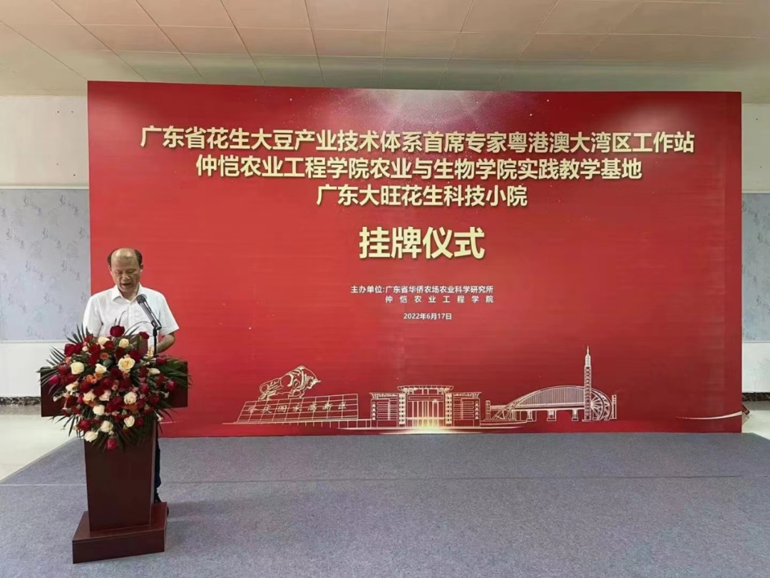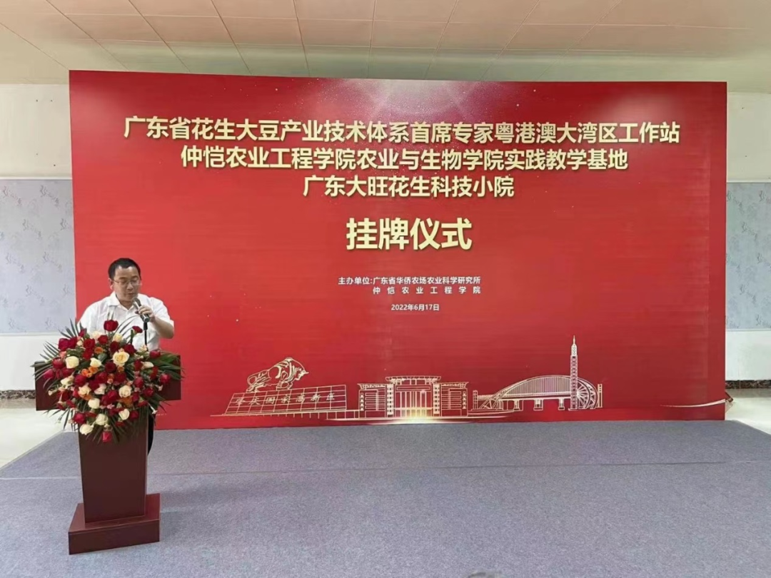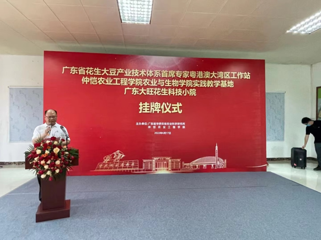 6月17日,全省首个也是唯一一个“花生科技小院”在肇庆高新区揭牌成立,同时在肇庆高新区落户揭牌的还有广东省花生大豆产业技术体系首席专家粤港澳大湾区工作站、best365官网入口注册实践教学基地。仲恺农业工程公司党委常委、副董事长肖更生院士,肇庆高新区政法委书记林春同志,以及best365官方网站专家学者、广东省华侨农场农业科学研究所相关技术骨干等各方代表30余人出席了揭牌仪式。