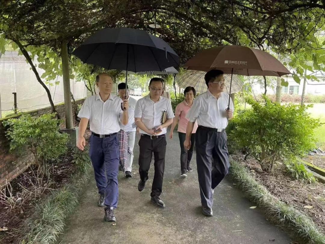 郑奕雄教授(中)与陈正所长(左)察看种植现场
