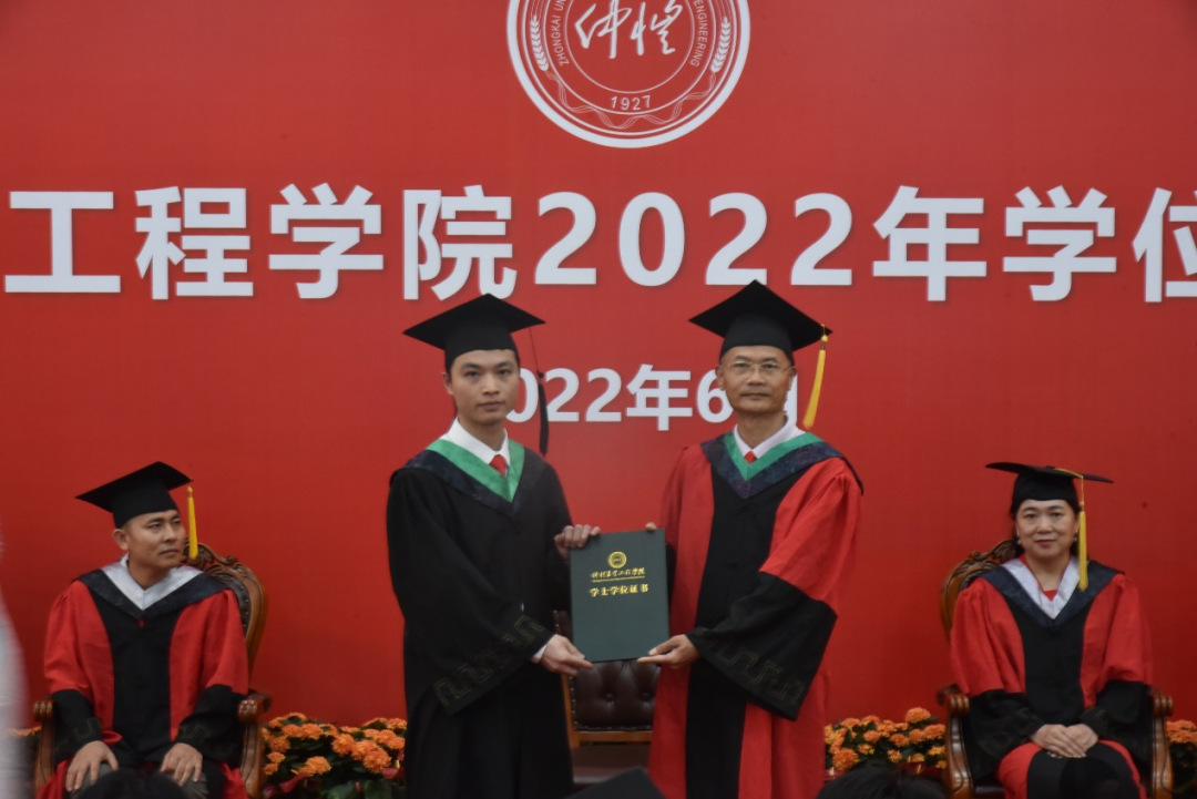 参加典礼的毕业生们,身穿黑色学士服,头戴学士帽,依次走上礼台;郑奕雄为他们颁发学位证书,给与最真诚的祝福与拥抱,并为其拨穗,随后合影留念;所有的不舍、感激、祝福、憧憬和期待,都定格在这一个个美好的瞬间。