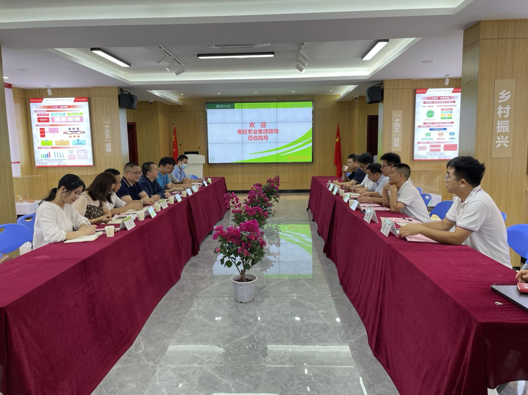 2022年6月16日上午粤旺农业集团副总裁邓正培、人力行政总监李艳清、信息技术总监刘军、餐饮运管中心副总经理李成树、食材团配事业部总经理陆松林、农业项目管理公司项目经理张玮等一行到公司进行合作调研。公司科技处副处长、轻工食品公司副经理曾晓房,农业与生物公司党委书记陈丹雄、副书记周超雄、副经理万小荣,信息科学与技术公司冯大春副教授等参加了此次会议。