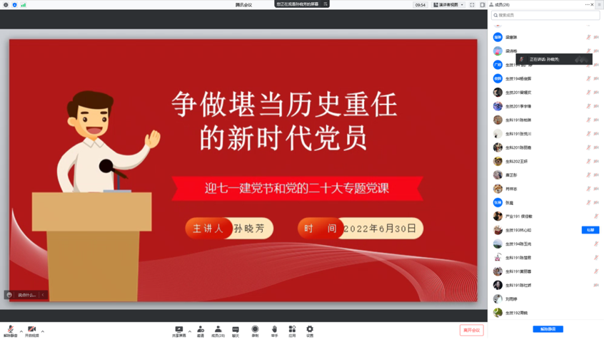 为迎接七一建党节及党的二十大,进一步增强员工党员的党性修养,引领员工党员牢固树立党员意识,担当历史重任,6月30日晚,生命科学员工党支部开展以“争做堪当历史重任的新时代党员”为主题的党课,党课由党支部书记孙晓芳主讲。