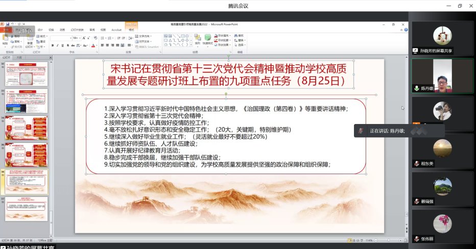 随后,各分管领导分别对公司新学期教学、科研、乡村振兴、员工工作等进行详细的安排和部署。会议还公布了2022级新生班主任名单,新进教师勇担重任,已做好充分准备迎接新生到来。