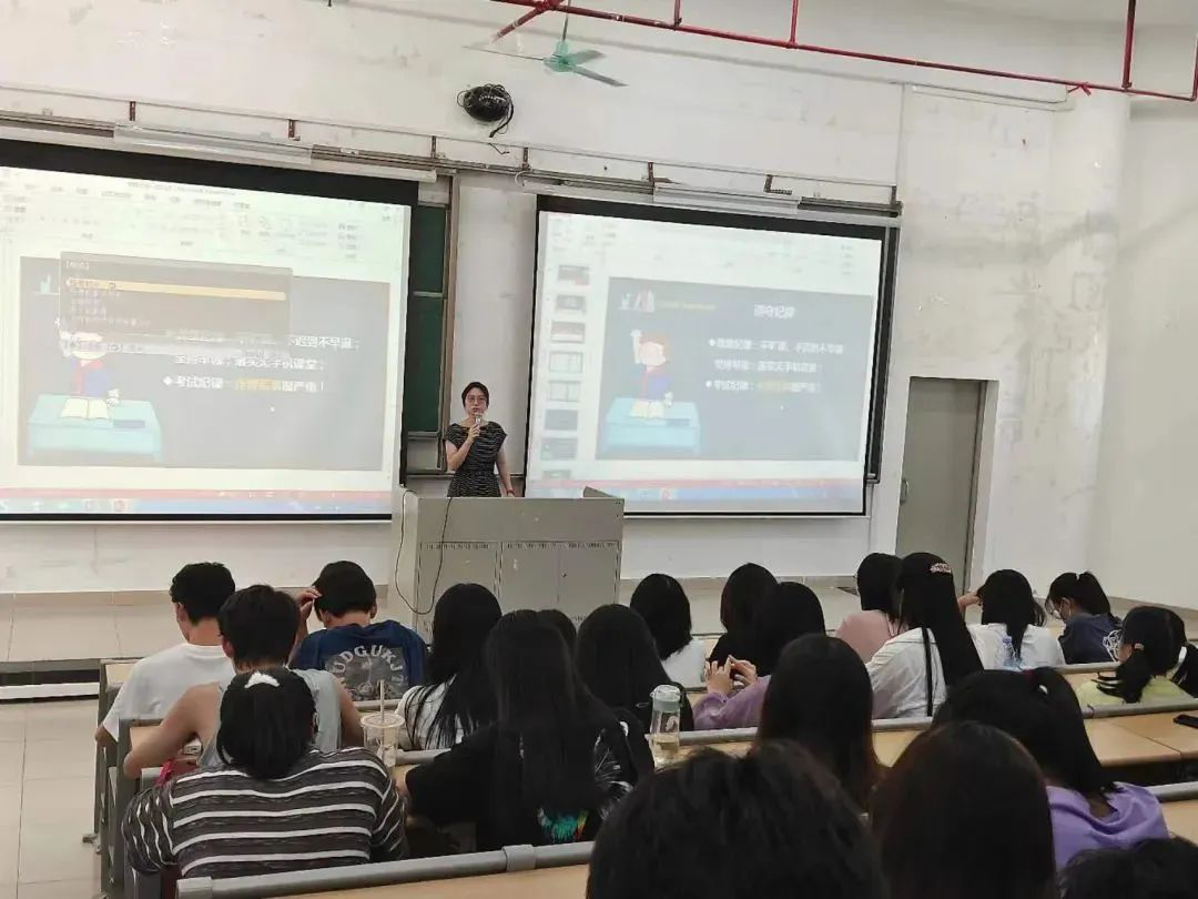 邝健睿首先从考试成绩、课堂考勤和纪律处分等方面对21级过去一年的学习情况作了具体的总结和分析,对违反课堂纪律和考试纪律的情况进行了通报,提醒同学们要严格遵守课堂纪律,今后将严抓日常早读和无手机课堂的落实。随后,她还带领全体参会的同学们集体朗读和学习了《员工手册》中关于课堂纪律和考试纪律的相关管理条例和规定。她指出,来到大学,努力学好知识是每一位同学的责任和义务,要认真学、虚心学、主动学,希望每位同学都能做到课前预习、课上练习、课后复习,掌握正确的学习方式和方法。