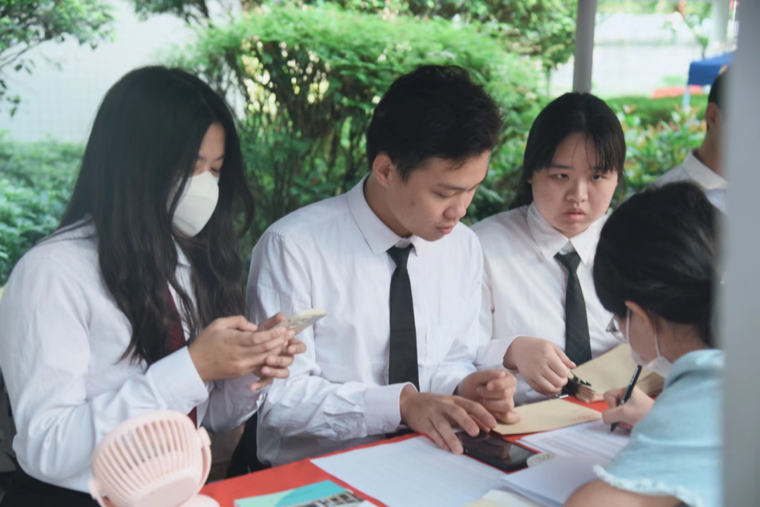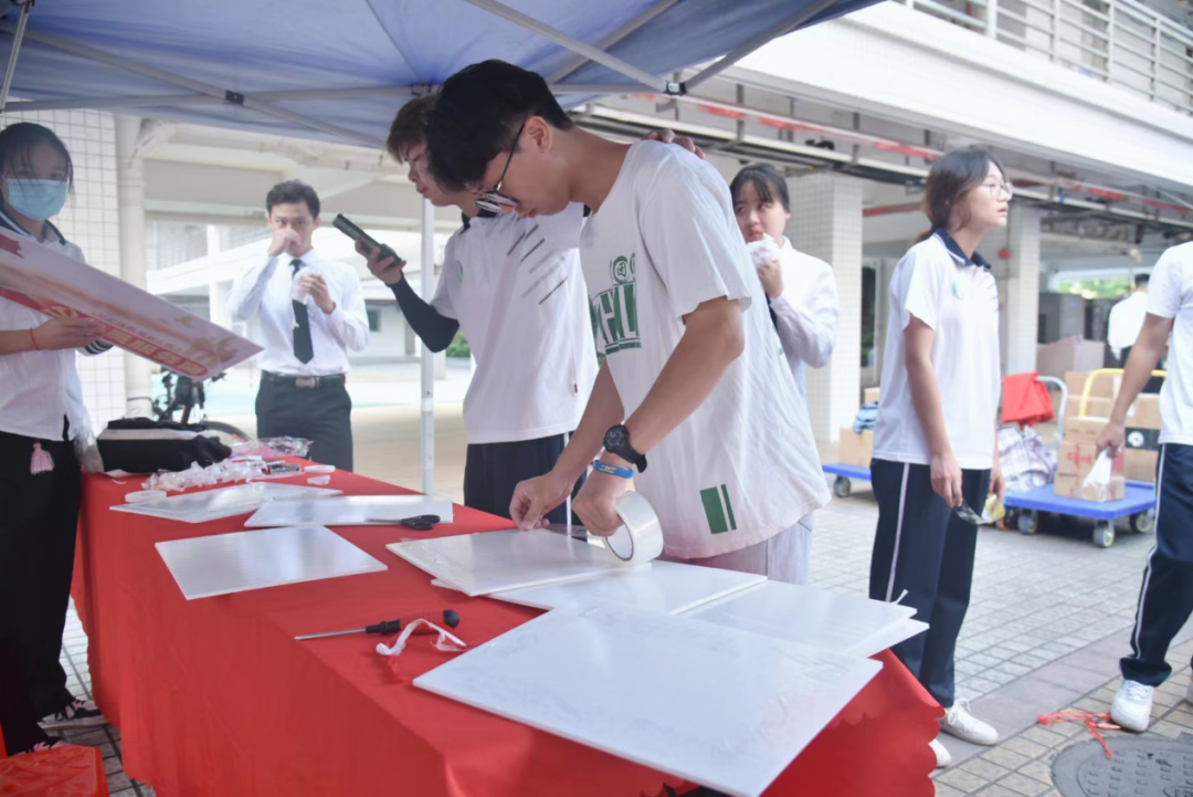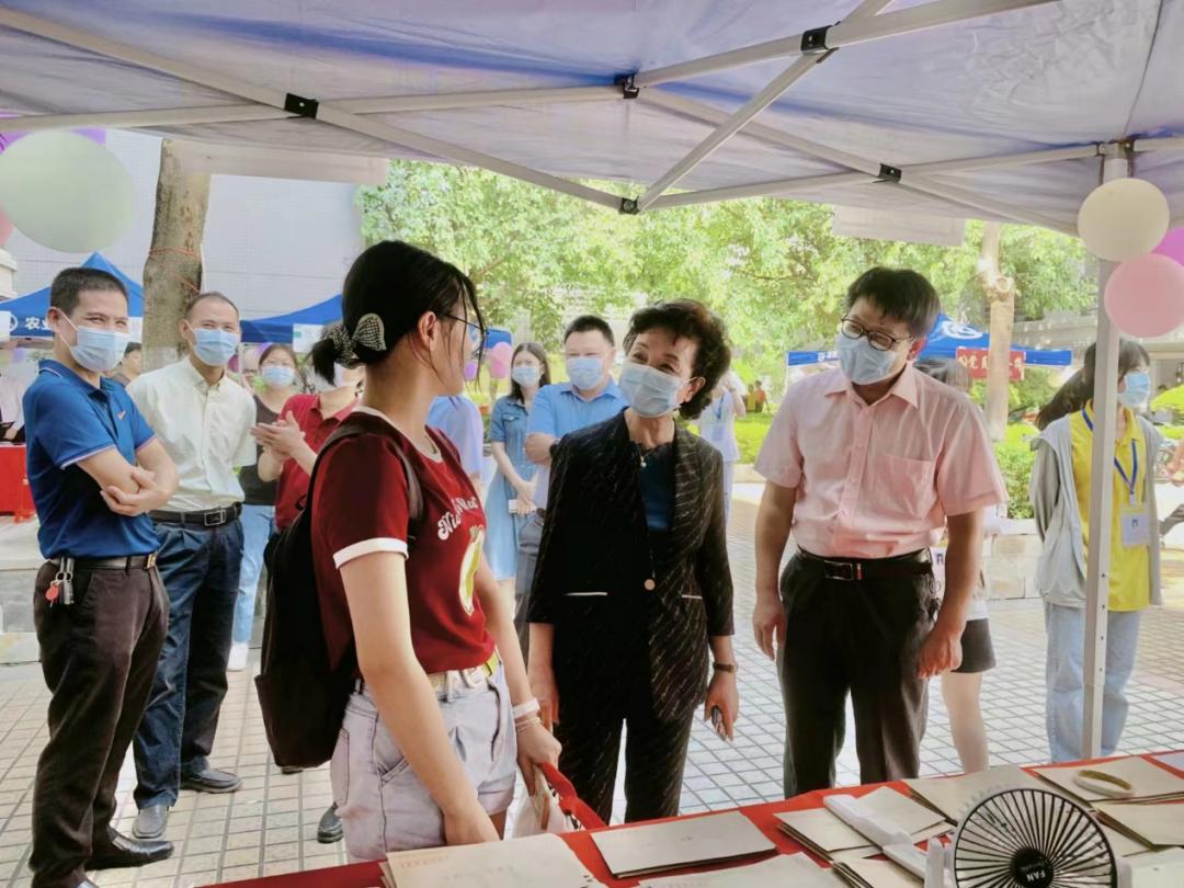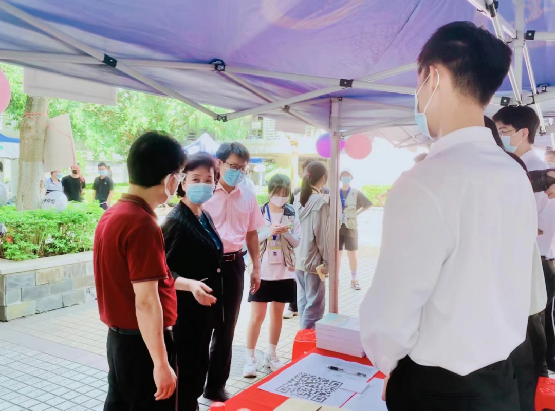 迎新现场,公司党委书记陈丹雄、副书记周超雄以及公司全体辅导员来看望和慰问现场工作人员,亲切地关怀新生。领导和老师的解答让新生家长不舍的情绪消失,露出满意的笑脸。