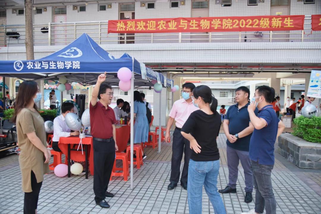 迎新开始,农业与生物公司党委书记陈丹雄、副书记周超雄以及公司全体辅导员来到迎新现场进行指导,了解迎新工作开展情况,开展相关工作指导,对现场迎新横幅的张贴进行指正,力求打造最美迎新现场。