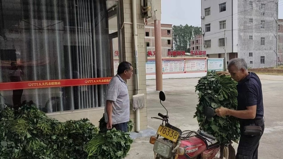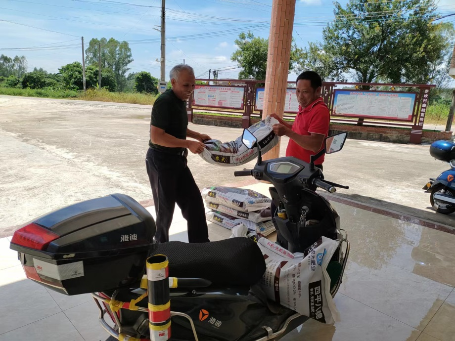 9月初,帮扶团队将西瓜红等多个品种的无毒甘薯苗分别送至两村,并给村民派发了肥料。
