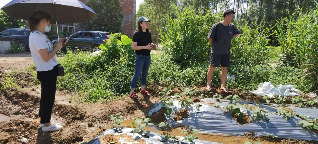 7月份至8月份,团队成员多次赴丽岗低坑村、赤坎村等的复耕地等进行考察,选定了十几亩适宜甘薯种植的地块,并指导其进行前期的准备。