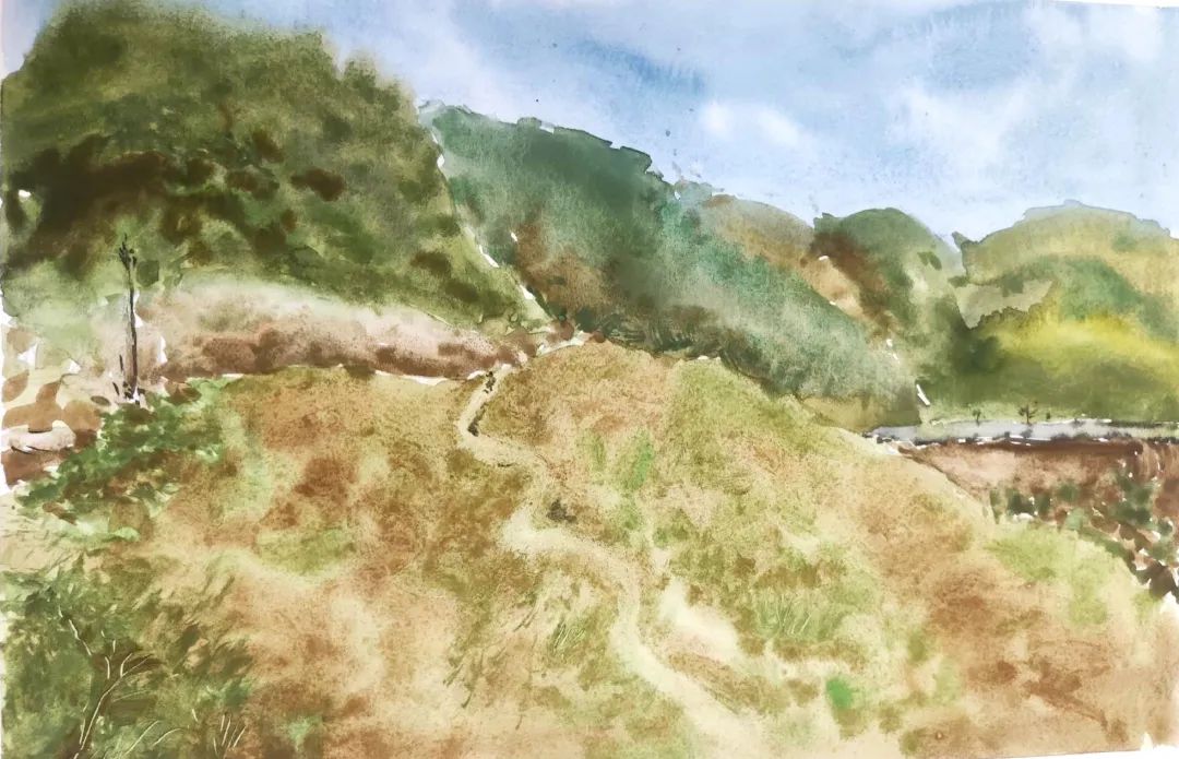 创作目的:有幸去过广西游玩,想将看到早春的广西稻田记录下来。