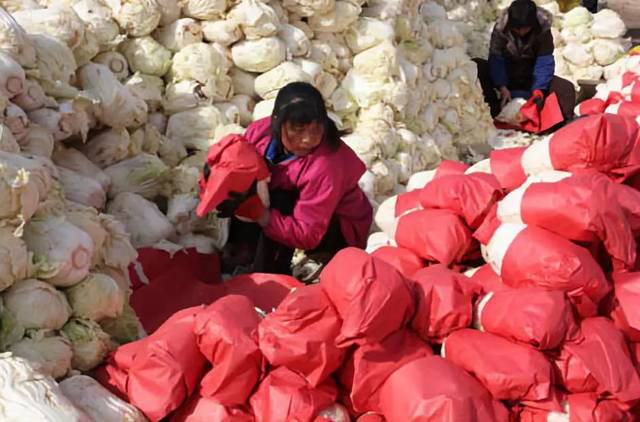 北方地区小雪节以后,果农开始为果树修枝,以草秸编箔包扎株杆,以防果树受冻。且冬日蔬菜多采用土法贮存,或用地窖,或用土埋,以利食用。俗话说“小雪铲白菜,大雪铲菠菜”。白菜深沟土埋储藏时,收获前十天左右即停止浇水,做好防冻工作,以利贮藏,尽量择晴天收获。收获后将白菜根部向阳晾晒3~4天,待白菜外叶发软后再进行储藏。沟深以白菜高度为准,储藏时白菜根部全部向下,依次并排沟中,天冷时多覆盖白菜叶和玉米杆防冻。而半成熟的白菜储藏时沟内放部分水,边放水边放土,放水土之深度以埋住根部为宜,待到食用时即生长成熟了。