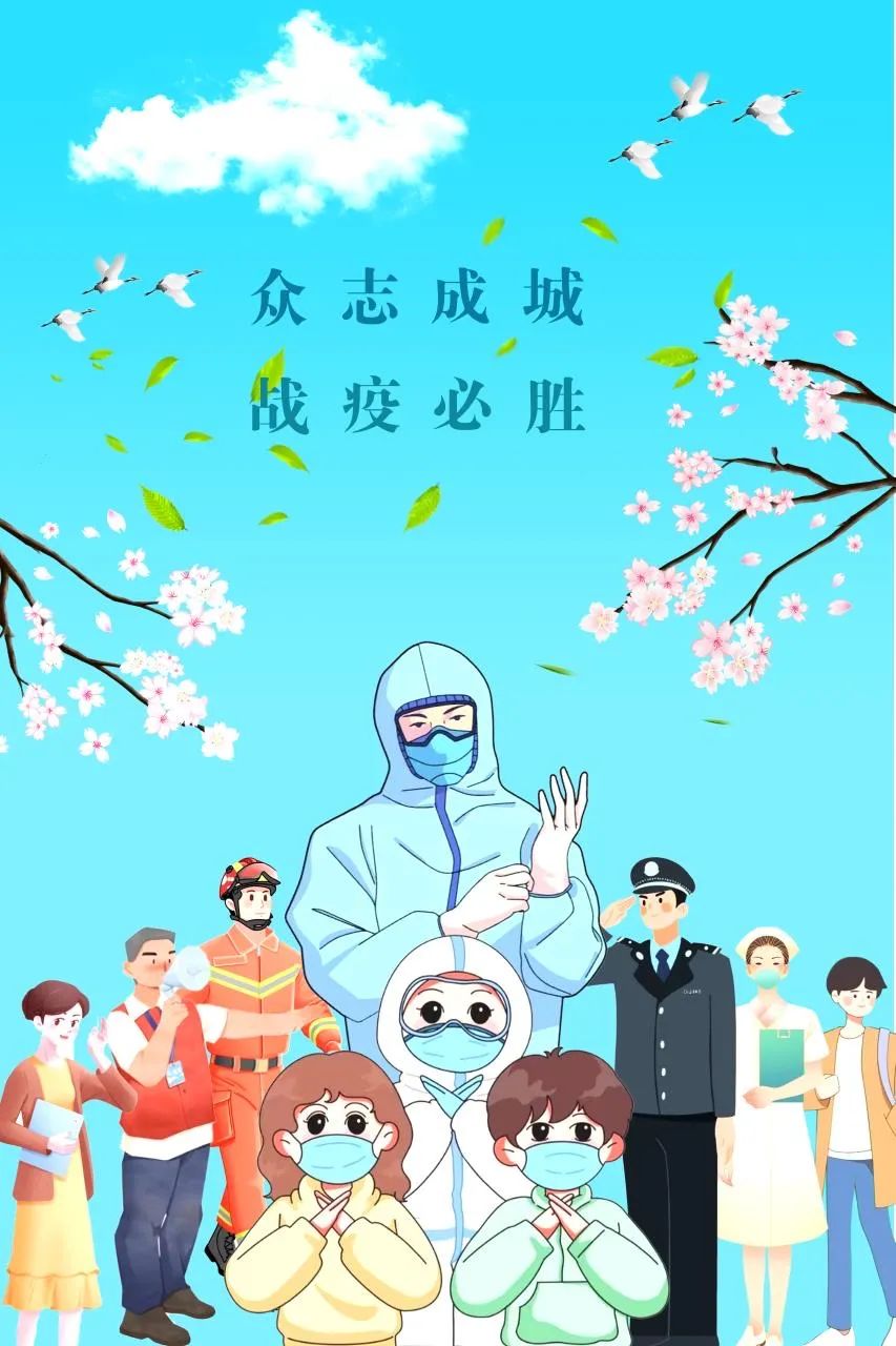 该作品围绕“抗击疫情 你我同行”主题为创作,蓝天和鲜花绿叶都是为了寓意抗疫胜利后的美好生活,迎来属于人民的春天。而图中不同的人身着不同服装代表了不同职业的人,旨在说明抗击疫情的路上不单有医护人员还有许多人民群众。而“众志成城  战疫必胜”这八个字更是中国人民战胜疫情的决心。光明总会战胜黑暗,而我们也终将迎来属于自己的春天!