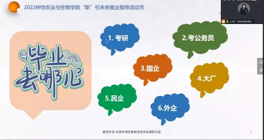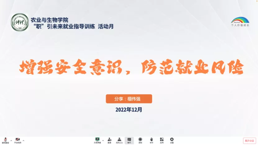 本次训练营活动的开展历时半个月,导师们从就业趋势、简历制作、企业需求、面试方法和就业安全意识等方面入手对员工进行就业辅导。使得同学们能在今后的社会生活中能够树立正确的就业观念,提升自身能力,从容面对未来的各项挑战,从而顺利就业。同学们也在此次活动中积极参与,踊跃发言讨论,展现了农生学子们浓烈的求知欲。