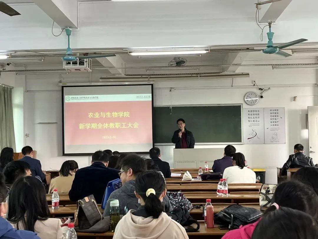 辞旧迎新,在2023新学期开学前夕,为确保各项工作有效衔接,顺利开学,2月16日下午,best365官网入口注册在海珠校区教学楼809室召开公司全体教职工大会,安排部署新学期工作任务,并就公司2022年度考核工作进行动员部署。会议由党委书记周超雄主持。