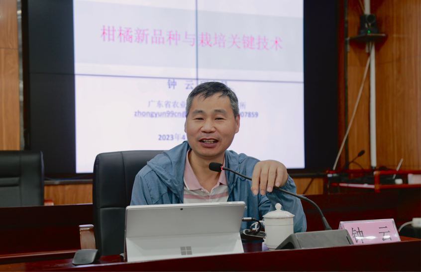 本次培训会由钟云研究员、毛润乾研究员、吴仲真副教授分别讲授了柑橘新品种与栽培关键技术、柑橘黄龙病综合防控技术和柑橘木虱绿色防控技术。当天,多位专家成员到达广东省柑橘种植龙头企业-广东远添农贸实业有限公司柑橘种植基地进行现场讲解。