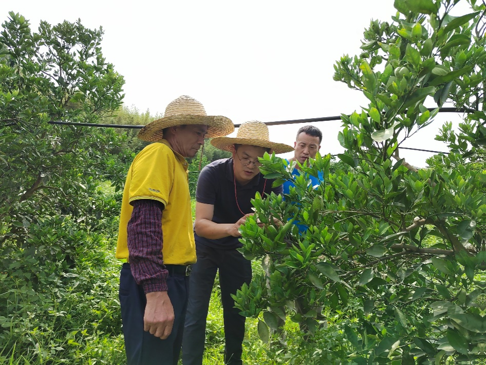 切实做好柑橘黄龙病监测与防控工作,确保紫金蓝塘柑橘产业安全,best365官方网站驻镇帮扶团队与中国农业科公司农业基因组研究所、广州市农业科学研究院组成调研组于 2023年4月25日至26日,赴当地柑橘种植基地开展黄龙病发生情况调查和防控工作。