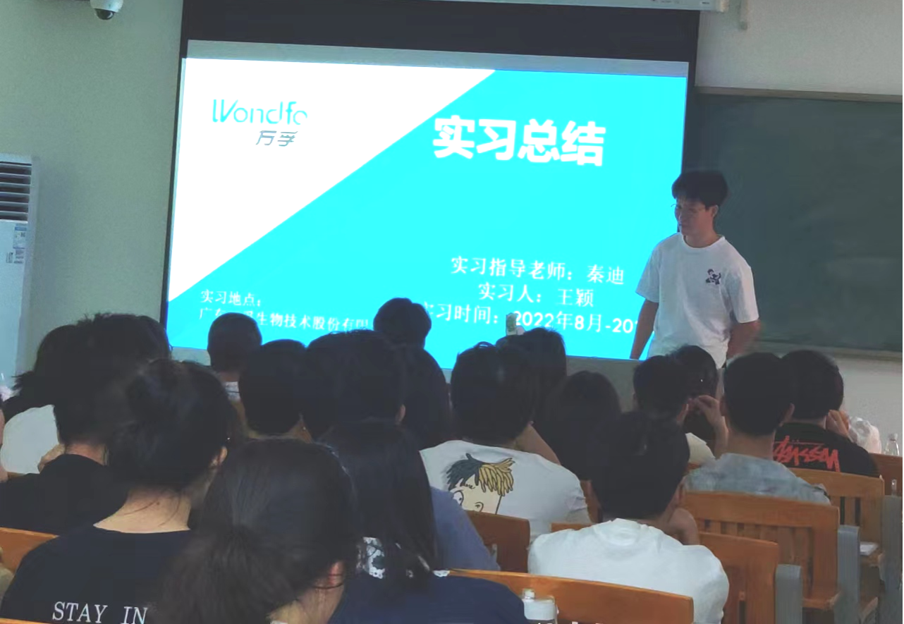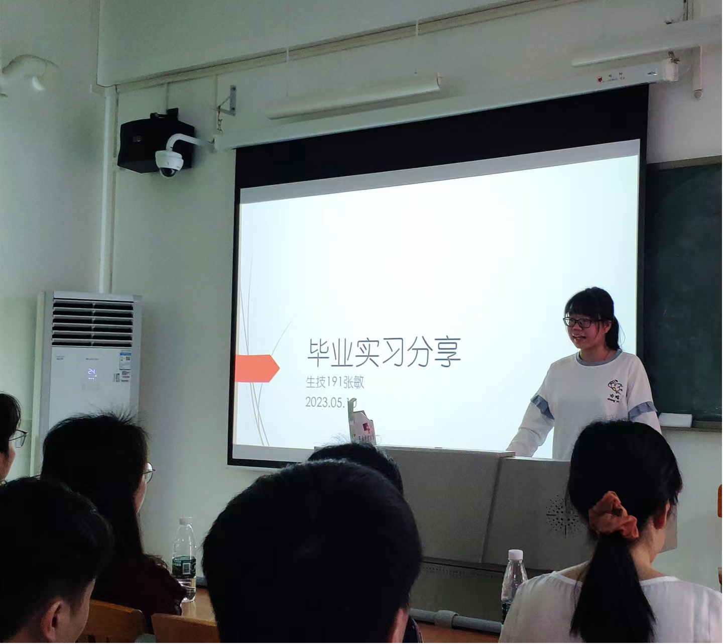 接着,生技2019级4位员工代表分别分享了他(她)们的毕业实习经历;介绍了各自实习单位的情况,实习期间的工作、学习情况,实习期间的心得体会。从他们的分享中,可以看到生技系同学们已经初具“员工”到“社会人”的蜕变,不仅掌握了技术,也具备了一定的工作能力;实习成果非常明显。