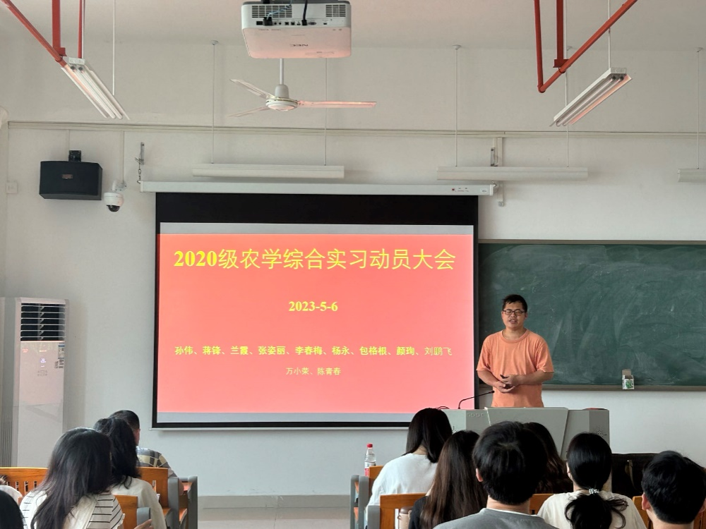 2023年5月6日上午,best365官网入口注册农学系在生科楼A507教室召开了2020级综合实习动员大会。会议由系主任孙伟博士主持,万小荣教授、刘鹏飞教授、颜珣教授、陈青春副教授、蒋锋副教授、兰霞副教授、张姿丽博士、李春梅博士、包格根博士、毕业班班主任杨永博士和2020级全体毕业生参加了此次会议。