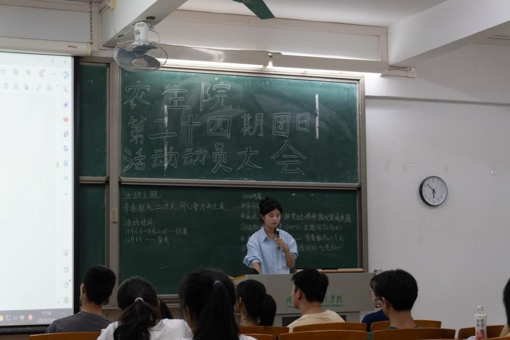 最后,公司主要员工骨干吴依林对此次动员会进行总结,并向各班级补充团日活动的注意要点。吴依林希望,农生院学子能够在此次团日活动中发扬创新进取精神,展现班级风采、青春风采,严格落实活动要求,积极部署,仔细谋划,以高标准完成团日活动任务。