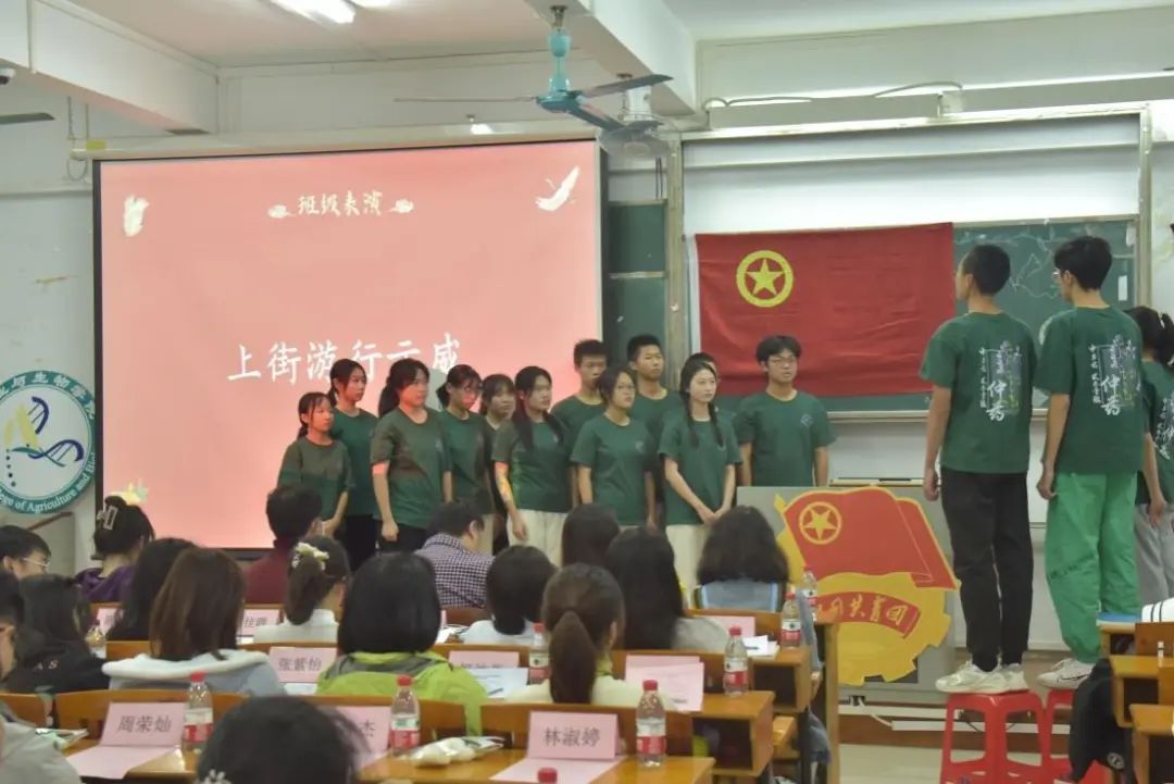 比赛开始前,全体同学起立,奏唱团歌。随后,种科231、植保221、植保232、生科221、生科231和中草药231共六个进入复赛的团支部依次进行了班级PPT展示和活动节目演出。各团支部详细地向大家介绍了各班团支部的组织建设、制度建设、思想建设和团日活动的情况。而在接下来的活动节目演出中,各团支部向大家呈现了精彩绝伦的表演,体现出了各团支部对本次团日活动的重视,展现出了他们的青春风采,收获了观众的喝彩与赞叹。