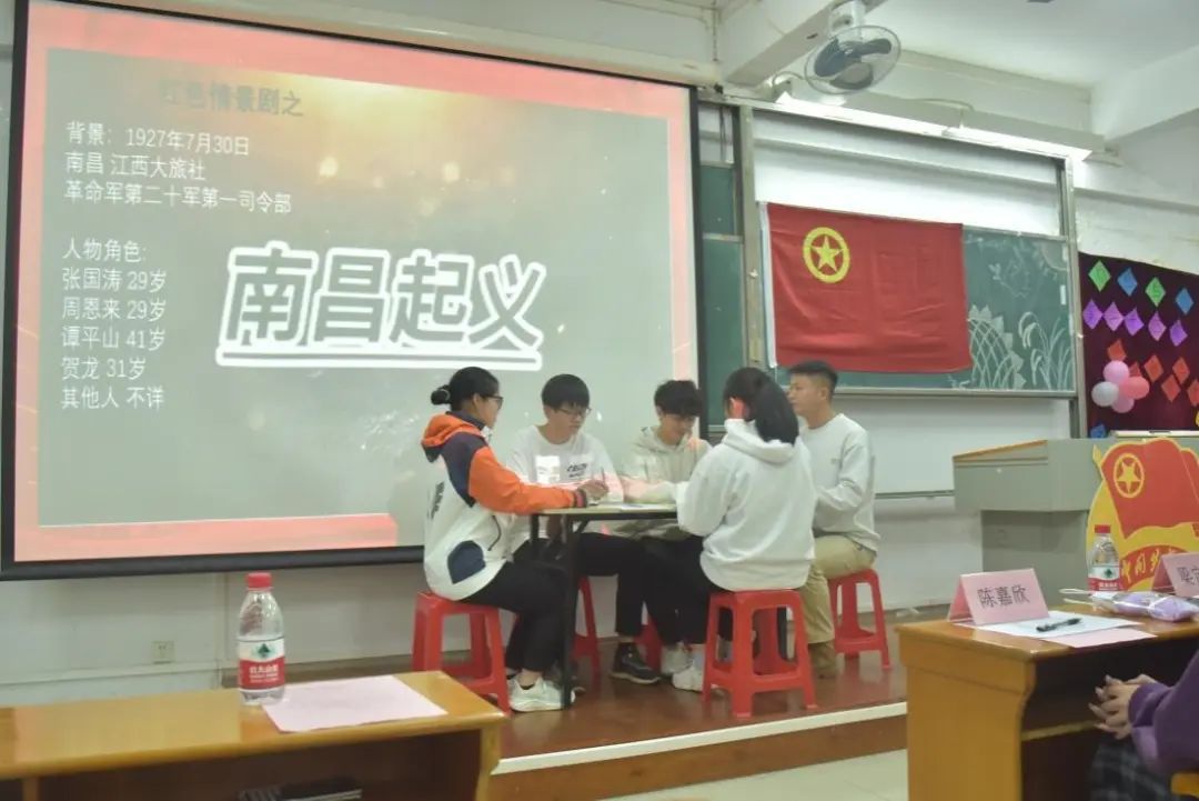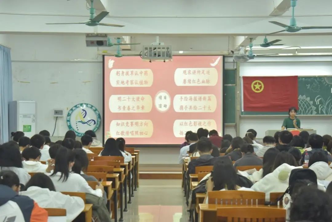 种科231团支部表演了合唱《奔跑》,悠扬的歌声里洋溢着青春的追求;植保221团支部带来红色情景剧《南昌起义》表现了当代青年学子对历史的追思;植保232团支部合唱《团结就是力量》,铿锵有力的歌声是同学们良好精神风貌的展示,其中蕴含的力量也让人为之一振;生科221团支部的一支《我和我的祖国》唱出了仲园学子对祖国的拳拳爱国情;生科231团支部朗诵《永远跟党走》,以抑扬顿挫、声情并茂道出仲恺学子对党的领导的坚定追随;中草药231团支部表演舞台剧《重燃五四激情,共赴灿烂星河》和合唱《夜空中最亮的星》表达他们心中的豪情壮志和献身祖国建设的远大志向。台上精彩纷呈,台下喝彩不断,大家都积极投入其中,现场气氛热烈。