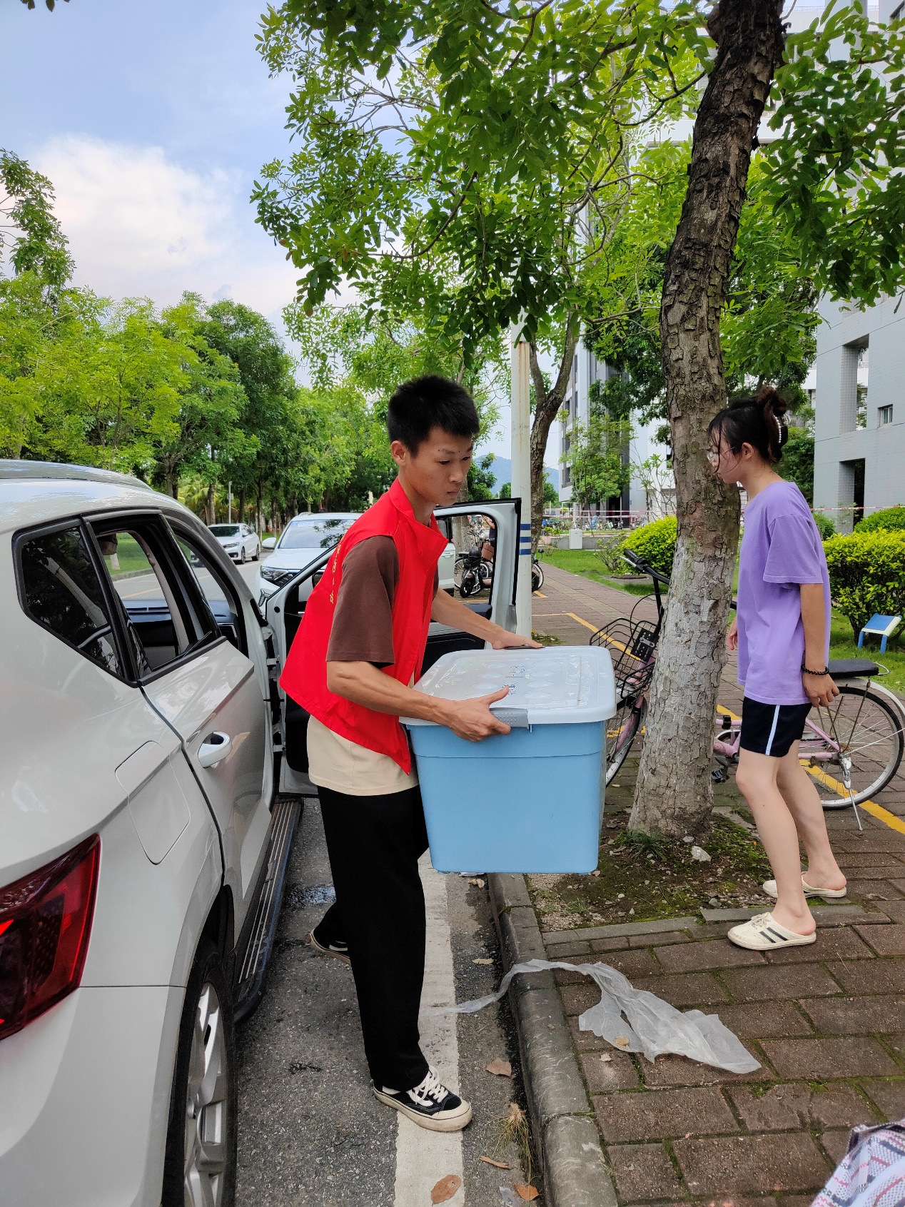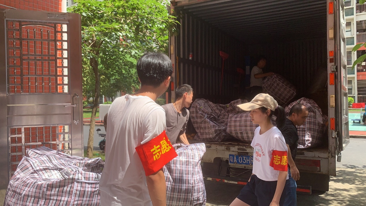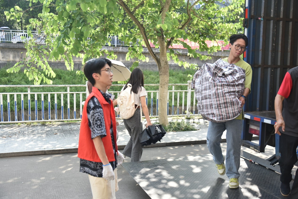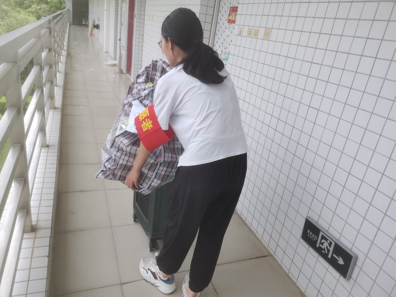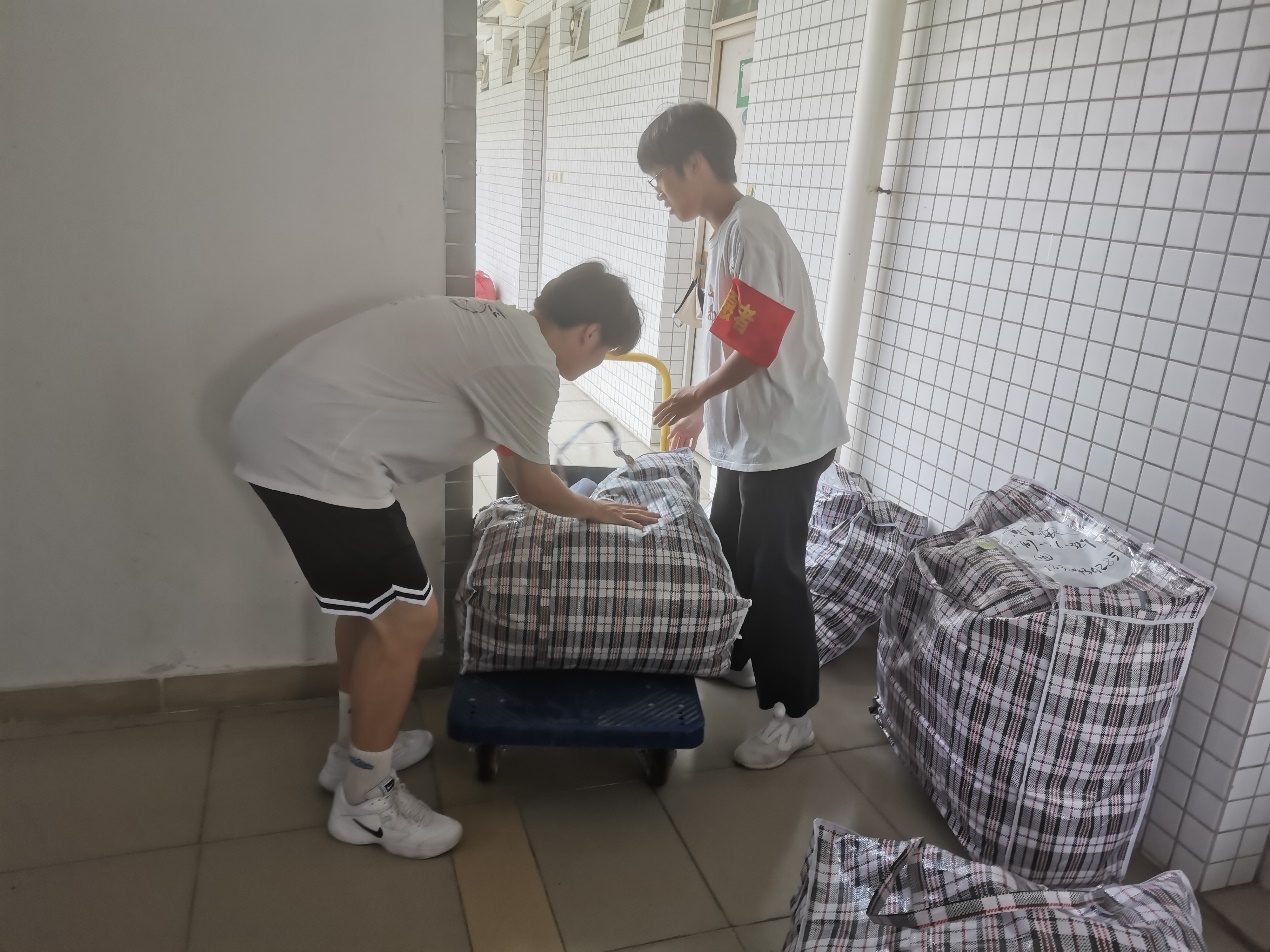 炎炎夏日却消散不了志愿者的热情,沉重的行李却压不垮志愿者前进的步伐。志愿者们分工明确、齐心协力,有条不絮地开展着搬运工作,有的驻扎在大本营指挥现场;有的负责将行李运上车;有的负责将沉甸甸的行李搬运上楼。教工及员工志愿者们用肩扛、或用手提,搬运着一袋又一袋沉甸甸的行李,搬运传递的不只有沉甸的行李,还有公司无形的人文关怀,温暖着每一位农生学子。一环接一环的搬运流程更是将老师、志愿者、员工紧密联系在一起,体现了公司同学老师之间团结友爱、互帮互助的优良品质。老师和志愿者们不断往返穿梭各楼宇之间,一道道匆忙的身影成为了校园里最靓丽的风景线。领导老师在本次宿舍搬迁工作中的全程参与,让同学们感受到来自公司的温暖和关怀,师生关系得到进一步提升。与此同时,党员先锋队积极发挥模范带头作用,用实际行动诠释了“奉献、友爱、互助、进步”的志愿精神,引导更多同学一起参与志愿搬运活动中。