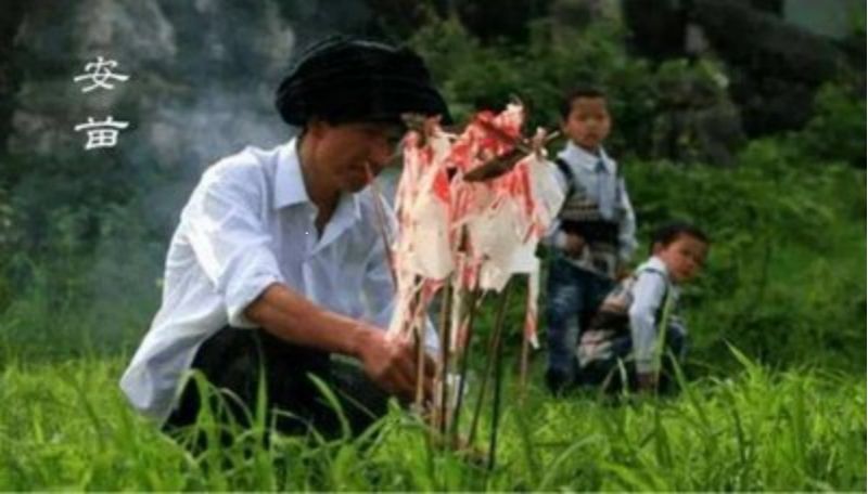 安苗系皖南的农事习俗活动,始于明初。每到芒种时节,种完水稻,为祈求秋天有个好收成,各地都要举行安苗祭祀活动。家家户户用新麦面蒸发包,把面捏成五谷六畜、瓜果蔬菜等形状,然后用蔬菜汁染上颜色,作为祭祀供品,祈求五谷丰登、村民平安。