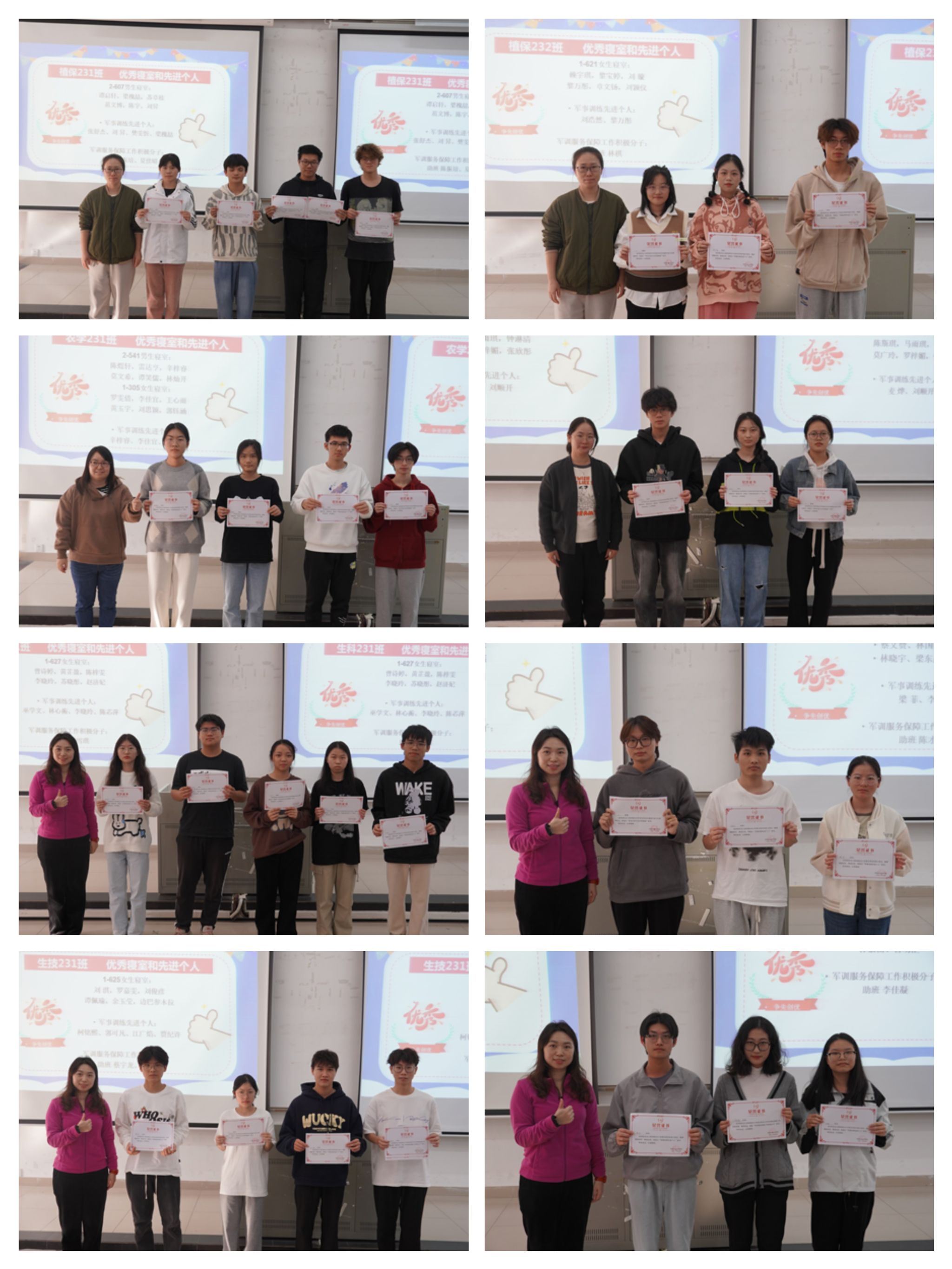 会上,对军训工作的先进集体和先进个人、优秀寝室进行了表彰,由班主任为获奖班级和员工颁奖。邝健睿表示,希望获奖的班级、宿舍和个人要继续发扬在军训期间形成的良好作风和精神品质,充分发挥模范带头作用,争当年级好榜样。