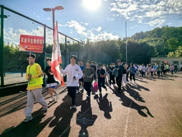 据悉,此次环校跑路线为:起点(田径运动场)——中山桥——刘宇新楼——乐昌桥——员工宿舍 10 栋——员工桥(打卡点一)——行政大楼 ——公司正门——廖仲恺铜像广场(打卡点二)——终点(图书馆广场)抵达打卡点时,农生院老师们仍然神采奕奕,不见倦色。师生在打卡点踊跃打卡,留下许多青春激扬的身影,切实实践阳光体育运动,传播出积极的声音。