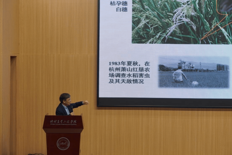 在讲座期间,陈学新教授以通俗易懂的语言为大家介绍了我国害虫全程生物防控的技术与当前研究的部分成果。陈学新教授首先点明了害虫全程生物防控的历史使命,展现其在农业应用的重要地位,同时也说明了害虫全程生物防控现在所面临的挑战,但是陈学新教授对克服这些困难充满信心,并且对年轻一代寄予厚望。陈学新教授以生动的例子剖析了害虫全程生物防治的理论创新和技术突破,简明扼要地说明了害虫全程生物防治在农业应用上的重要性和光明的发展前途,分享了团队在这一领域的最新研究进展。讲座生动有趣,观点创新,让在场师生受益匪浅。