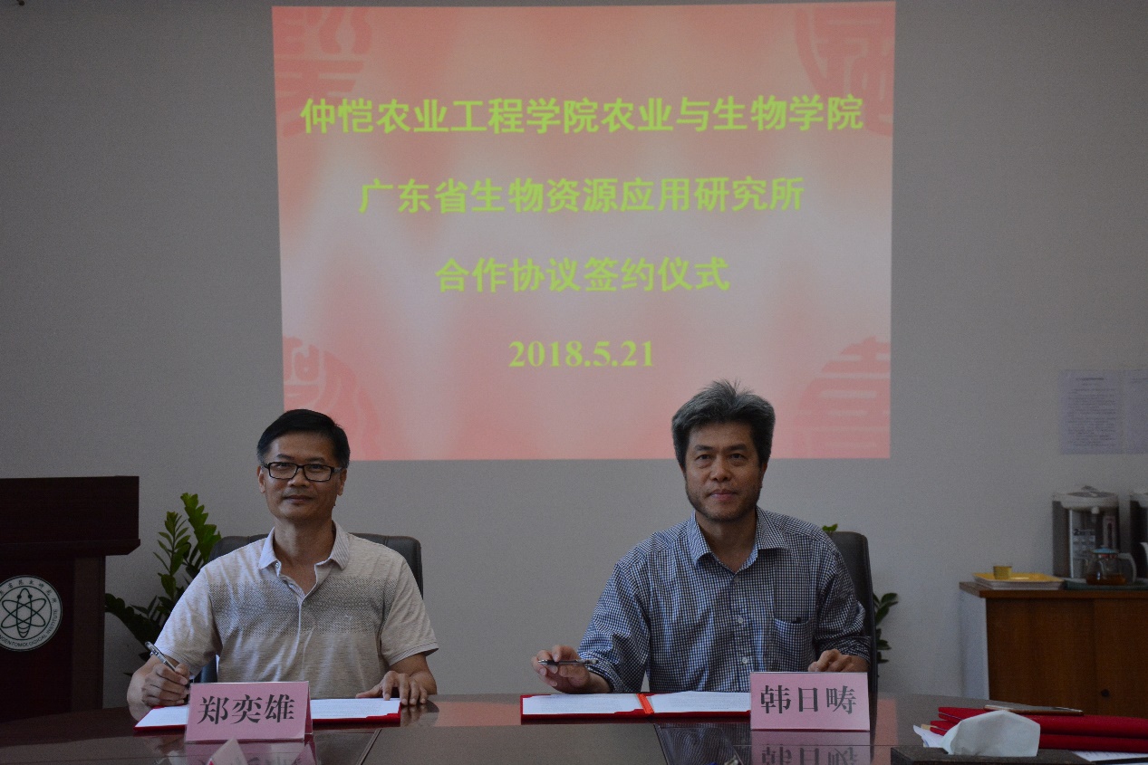 5月21日下午,公司教务处副处长梁雪莲、best365官网入口注册副经理(主持工作)郑奕雄、副经理周玲艳、植保系主任韩群鑫一行4人前往广东省生物资源应用研究所举行研究生联合培养签约暨实践教学基地揭牌仪式。广东省生物资源应用研究所党委书记阳建春、所长韩日畴等出席仪式。
