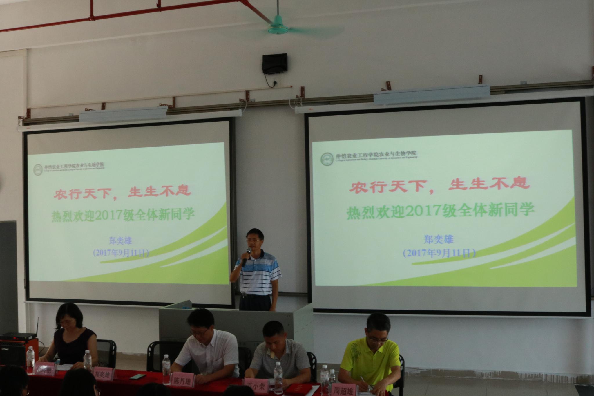 公司副经理(主持工作)郑奕雄教授致欢迎辞。他代表公司全体老师对新生的到来表示热烈欢迎!接着向新生们介绍了公司的基本情况,展示了公司的教学成果、科研成果和人才培养成果,并展望了公司未来的发展方向和前景,使新生们对公司有更全面的了解,对现代农业有更深刻的认识,从而增进了求知的欲望、增强了学农的信心。