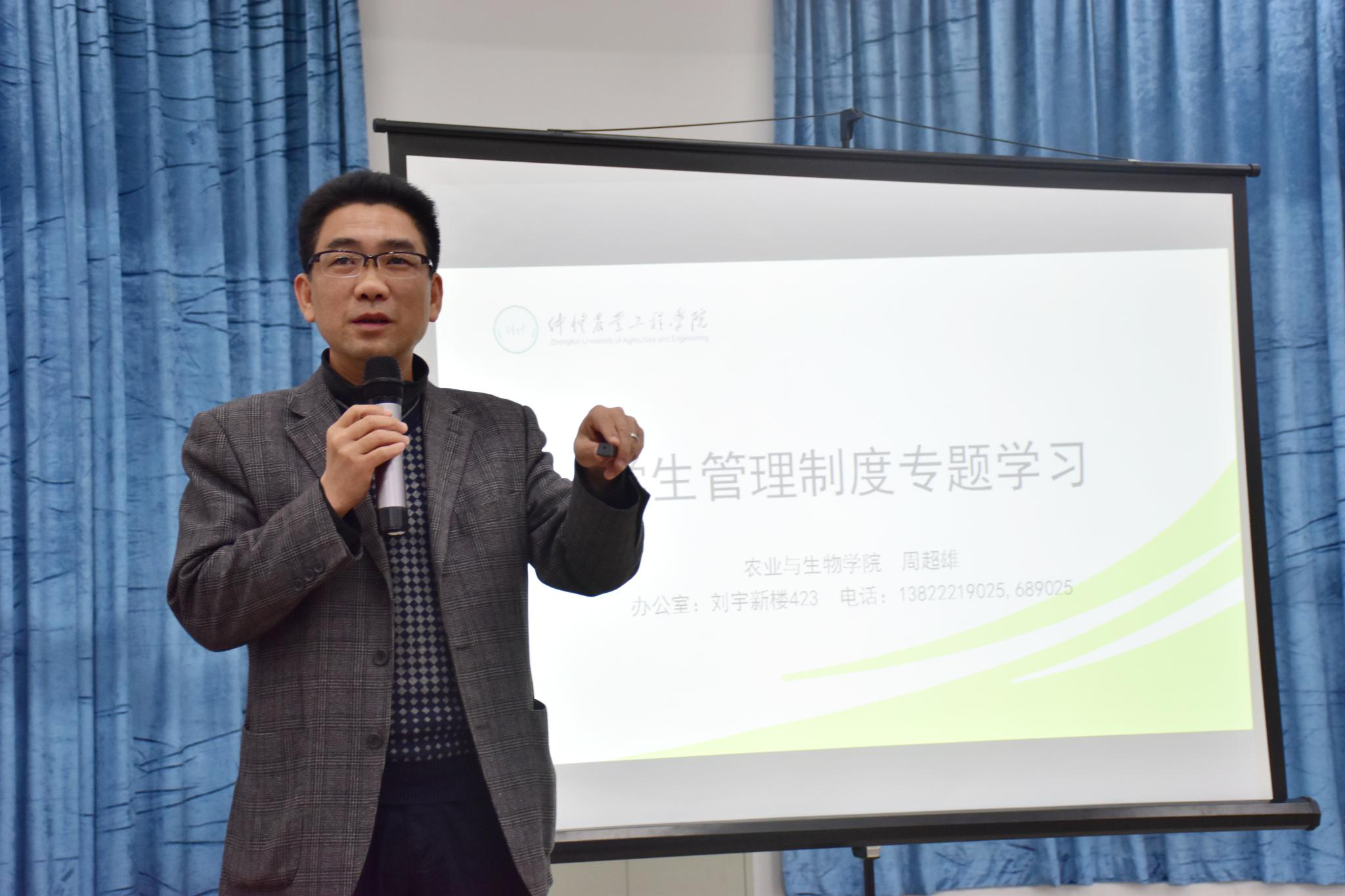 在讲座开始前,周书记指出社会主义大学的根本任务是为社会主义事业培养健康人才,在党的十九大精神带领下,农生院的每位学子都是社会主义新时代的老员工,因此,深入学习党的理论知识及员工管理制度是十分重要的。