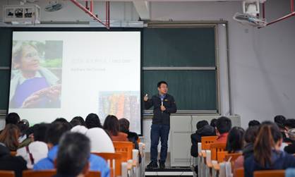 在第二场报告会中,严建兵教授为公司师生作了“我如何爱上玉米的?”的分享。严教授分点阐述了他在求学期间的几种对他影响重大的选择,并强调了“选择比努力更重要”的观点,同时还向在场的师生介绍了关于玉米作物的起源和许多在玉米研究方面有建树的专家和学者。