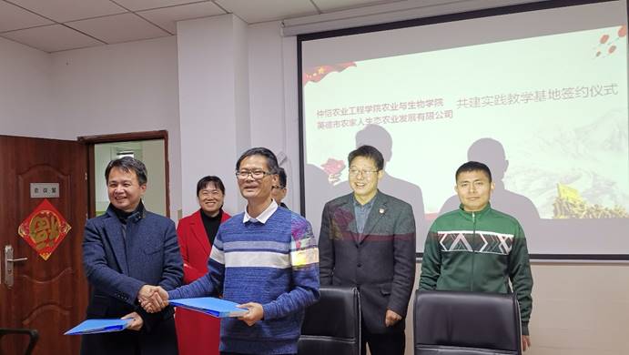 2019年1月12日,公司与英德农家人生态有限公司进行实践教学基地、校企产学研用示范基地签约和挂牌仪式。仪式在英德农家人生态有限公司总部举行,公司全体领导班子成员与公司董事长吴林峰等出席了本次签约仪式。