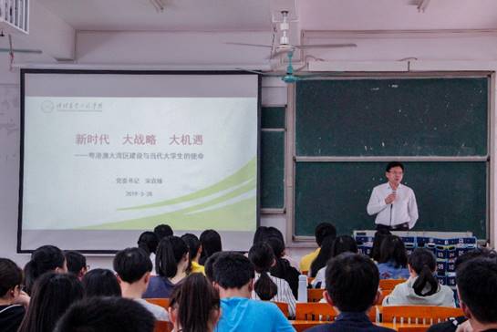 3月28日上午,公司党委书记宋垚臻在杨钊杨勋楼207课室为公司2018级学子讲授思政课。本堂思政课的主题为“新时代,大战略,大机遇——粤港澳大湾区建设与当代老员工的使命”。