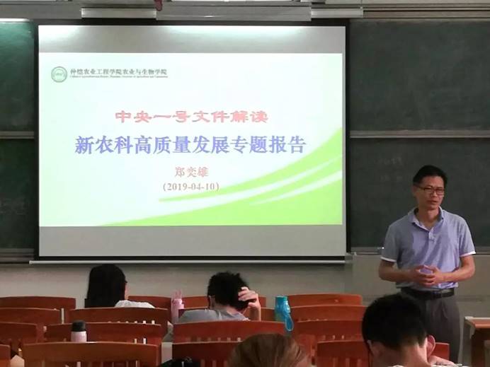 2019年中央一号文件指出,要全面深化农村改革,聚焦三农问题,加快推进农业现代化。为了让农生学子更加深刻领会其中的内涵,4月10日上午,公司副经理(主持工作)郑奕雄在综合楼704教室为公司2016级种子科学与工程专业的员工讲授了主题为“中央一号文件解读——新农科高质量发展专题报告”的思政课。