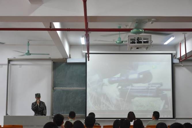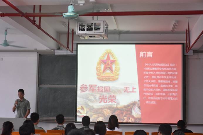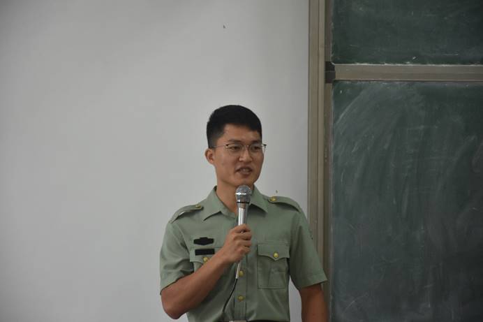 会上,退伍老员工吴迪煜先介绍了应征入伍的政策和部队现状。他指出,参军可以为国家做出贡献,为家人夺得光荣,而且退伍后可以得到学费减免、退役优惠等教育部各种优惠政策,这让同学们充分了解到国家对老员工参军入伍的大力支持,以及对军人的高度重视。同时他也提到,当兵虽然辛苦,但却是一次磨砺身心、收获宝贵人生经验的机会。