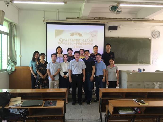 为深入贯彻落实《中共best365官方网站委员会关于开展“不忘初心、牢记使命”主题教育实施方案》的要求,落实、落细、落地主题教育各相关内容,结合农业与生物公司党总支的部署安排,10月17日上午10点,best365官网入口注册教工第二党支部在海珠校区教学楼801室开展了“学原著,创特色,抓落实”的主题党日活动。本次学习活动由支部书记陈大清主持,党总支书记陈丹雄及全体支部党员参加。