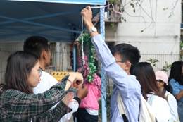 10月26日,公司白云校区“三下乡”成果展在杨钊杨勋楼与曾宪梓楼之间的空地举行。公司队伍“仲系农情小分队”在16号摊位进行成果展示。活动开始之前,工作人员早早就来到指定的摊位上搭建帐篷,紧锣密鼓的进行摊位布置,挂上了小分队在2019年暑期“三下乡”期间的风采照片,为摊位布置彩色装饰以及立上身着仲系农情小分队队服的稻草人,并且准备了许多好玩的小游戏和精美的小礼品,以此增加活动的气氛。