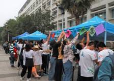 摆摊期间,摊位现场人来人往,气氛十分活跃。摊位上悬挂的照片引来许多同学驻足观看,队员们认真地为同学们介绍图片内容,讲解在阜沙镇实践调研过程的情景。摊位上的小游戏吸引了前来参观成果展的同学们,同学们积极参与游戏并赢得了精美的小礼品。中午时分,公司员工高举公司旗帜,与其他公司的同学一起开始了校园内环跑,同学们高呼“农行天下,生生不息”的口号,展现出农生学子一腔热血与无限活力。