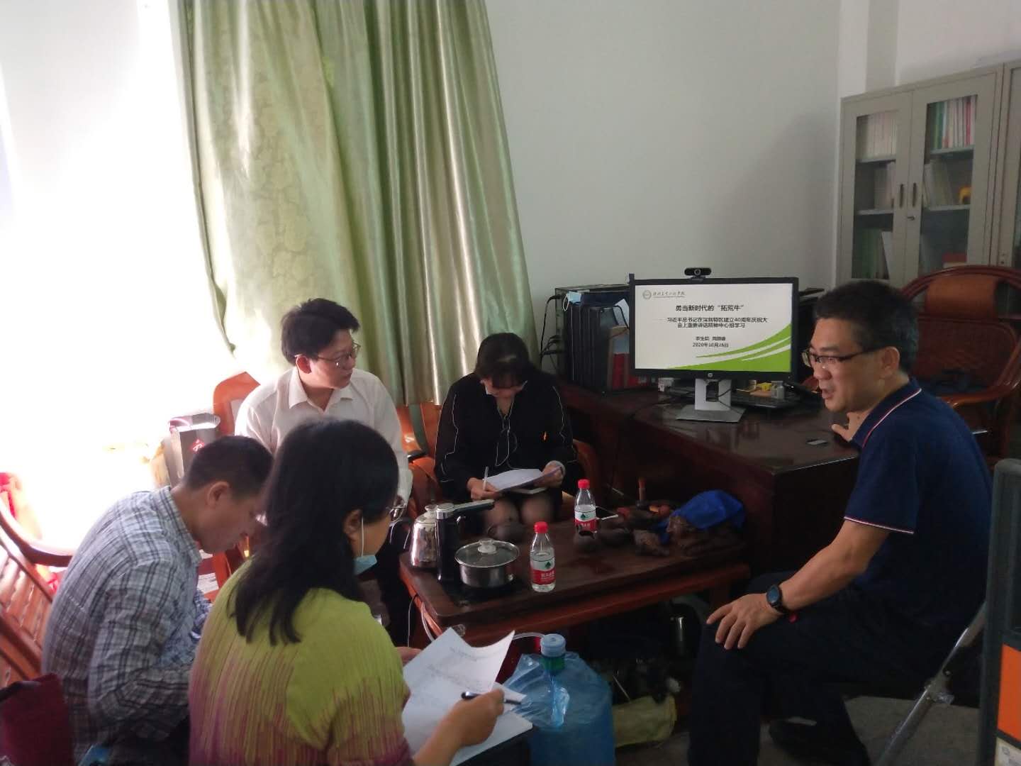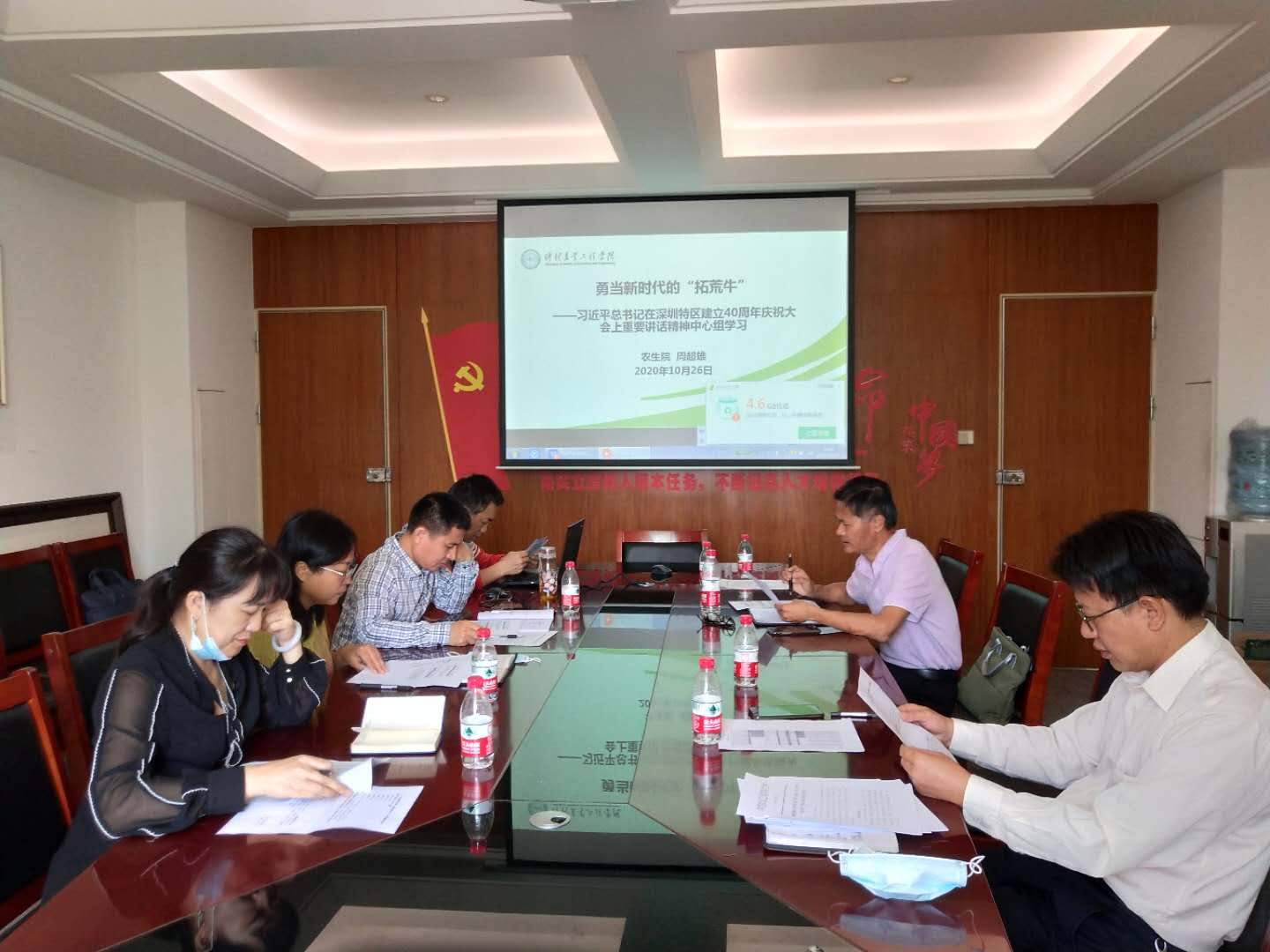 10月26日上午,农业与生物公司党总支召开中心组理论学习会议,专题学习习近平总书记在深圳特区建立40周年庆祝大会上的重要讲话精神,会议由党总支书记陈丹雄主持,全体领导班子成员及教工第一支部书记韩群鑫参加会议。