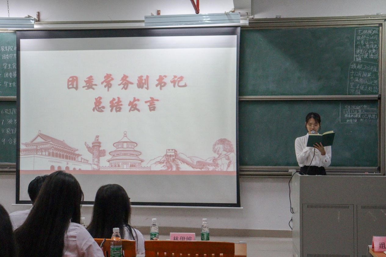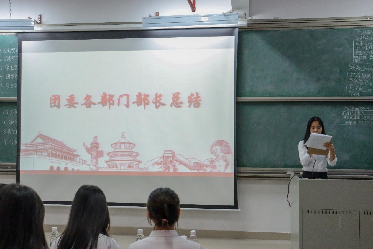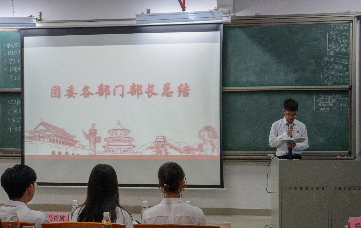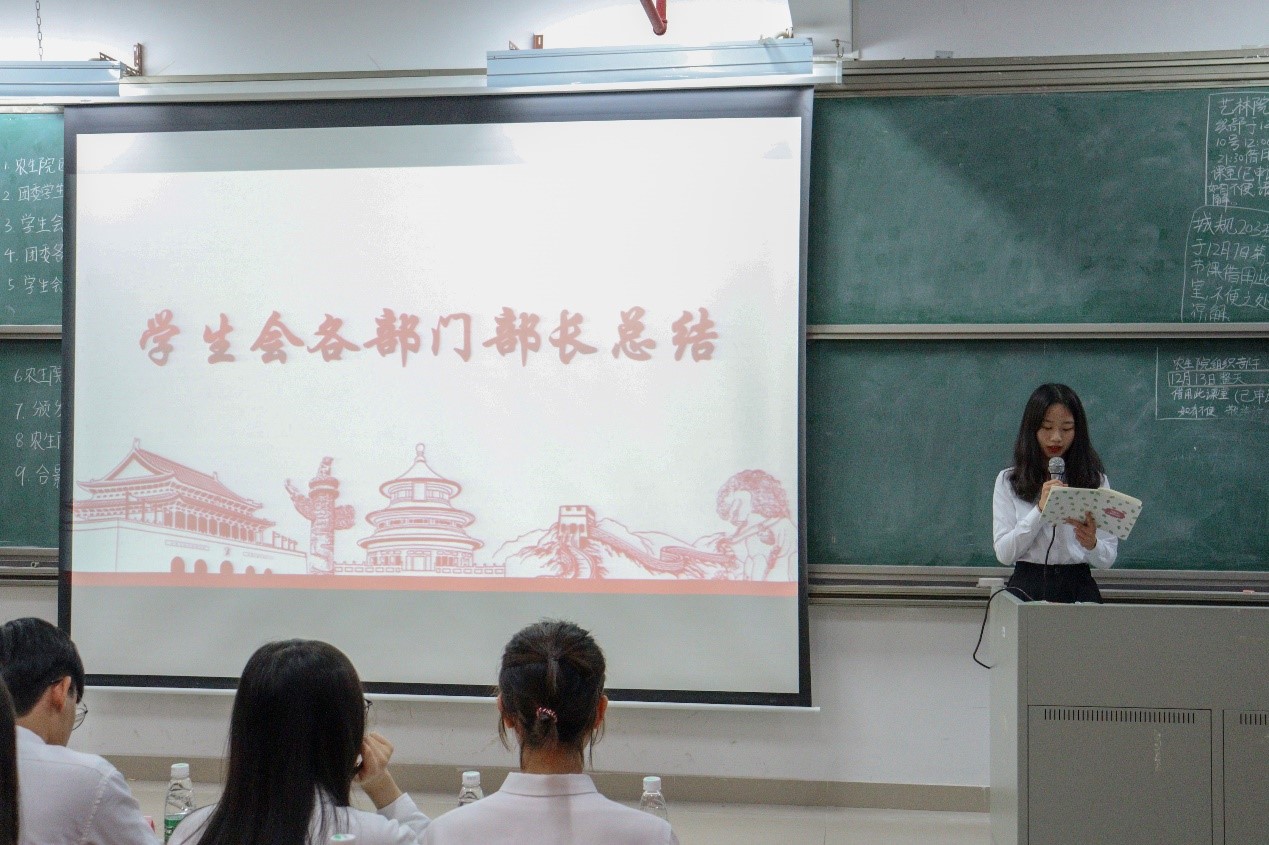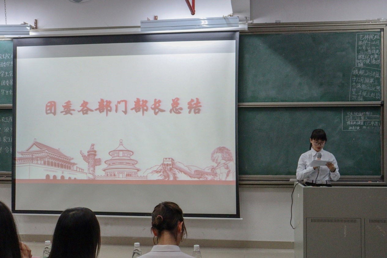 接着由林伊纯同学上台发言,她从组织建设和校园文化活动两个方面介绍了工作中取得的成绩和存在的不足。随后由员工会执行主席区涣彩从员工会职责以及各部门在活动中的表现进行工作总结并对自己未来的工作提出要求。紧接着,由团委办公室、组织部、宣编部、新闻媒体部、实践调研部、易班工作站、青协以及员工会班委部、学业部、心理与健康服务部、文体部、公关部的代表们依次上台发言,他们对近期本部门的工作内容做了详细汇报,并指出了工作中所取得的成绩和存在的不足之处,此外,他们还讲述了12月的工作计划和展望。各部门负责人的总结发言后,苏登宣读了第二届团学组织主要干部名单,公司党总支副书记周超雄和苏登为主要干部颁发聘书。