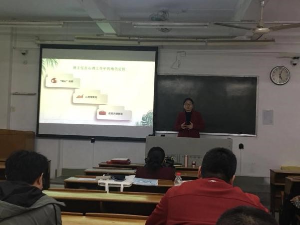 辅导员高结怡做老员工心理健康专题介绍。她指出,班主任在心理工作中有重要作用,要发挥好“知心”伙伴、心理观察员以及信息沟通桥梁的作用。接着,她重点介绍了老员工心理问题与心理危机的识别与应对,并希望班主任在工作中做好陪伴、支持、转介以及报告等工作,共同帮助同学们成长成才。