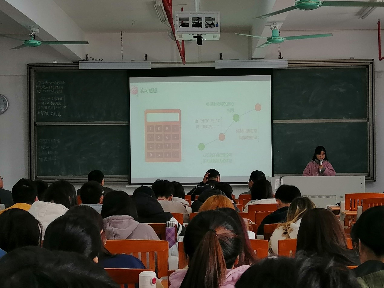 随后,按照要求,同学们以实习科室为小组进行了实习总结汇报,共有18个小组。各小组分别从日常工作、学习、生活和实习心得等方面进行了汇报,同学们普遍反映虽然实习部分环节很枯燥,但经过一阶段的适应和锻练以后,他们发现所有的付出都是为了后面更多的收获,在实习单位他们学习到了很多课本外和公司没有接触的知识,扩展了知识面,此外,本学期实习没有吃住后顾之忧,能够更全身心投入学习中去。